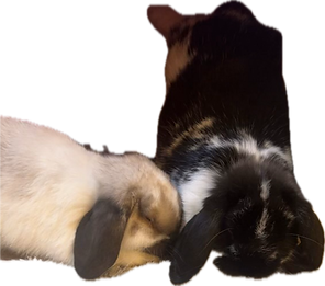 Our in-house fluffle is made up of three adorable rescued bunnies: Luna, Millie, and Clover. Bred by an amateur and destined to be eaten, they were saved from an outdoor shipping container under harsh conditions. Now, they’re safe, warm, and living their best bunny lives.